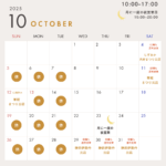 - 10月営業日のお知らせ酷暑の8月が終わりようやく9月も終わりに近づいた頃になんとか安全に外… 続きを読む: 10月営業日のお知らせ